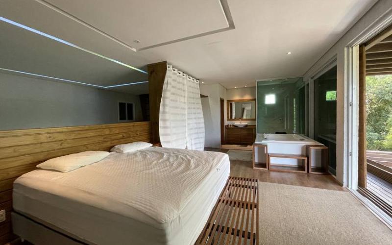 Nos pisos superiores temos um loft enorme com imensa área de lazer , jacuzzi para 6 pessoas, cozinha gourmet, 2 salas, pé direito duplo, uma grande suíte máster com banheira e sacada com deck privativo .