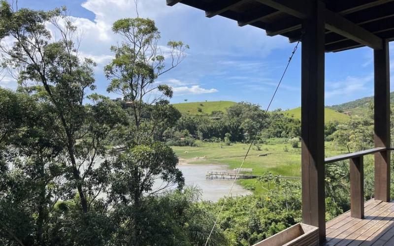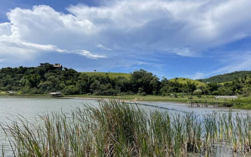 O terreno tem uma praia particular no saco da lagoa de Ibiraquera