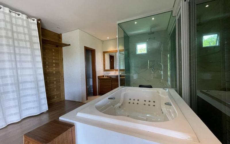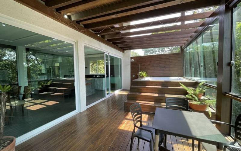 Nos pisos superiores temos um loft enorme com imensa área de lazer , jacuzzi para 6 pessoas, cozinha gourmet, 2 salas, pé direito duplo, uma grande suíte máster com banheira e sacada com deck privativo .