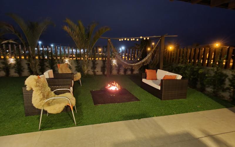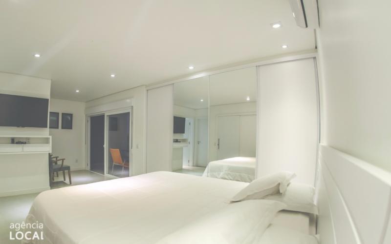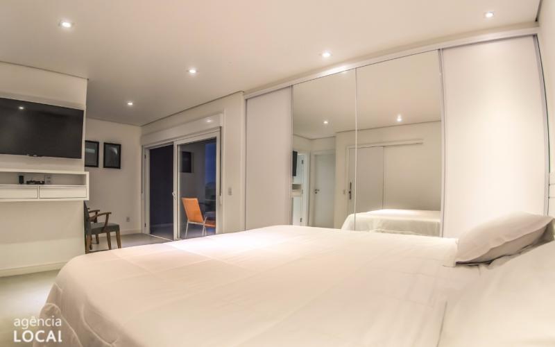 A segunda suíte, com 20 m², possui uma varanda com terraço, uma cama queen size, TV smart de 42 polegadas, banheiro com pia esculpida e ducha a gás. Já a terceira suíte, com 15 m², oferece uma cama queen size, ar condicionado e um banheiro com ducha a gás.