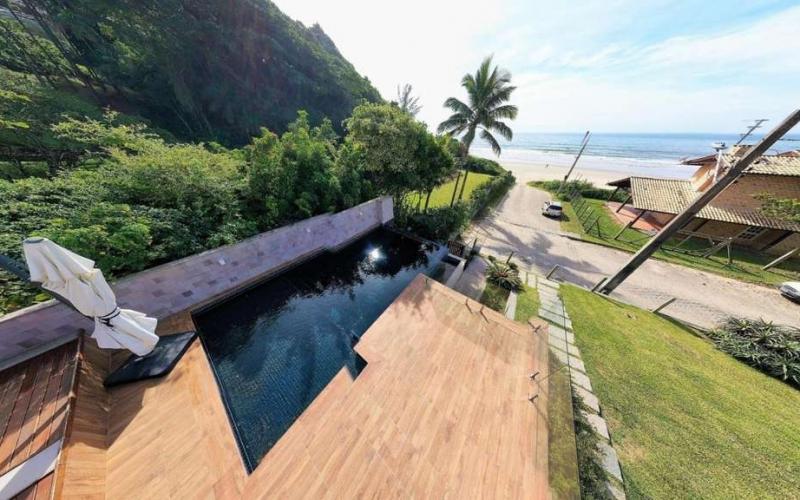 Sala integrada a cozinha, eletrodomésticos novos, Split e vista para o mar, com piscina aquecida e 'cobertura' da piscina de borda infinita é automatizada com 'controle remoto'