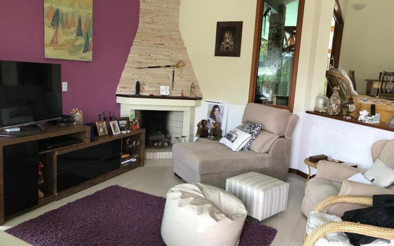 Fina residência com 235,15m2, pé direito, alto padrão construtivo, aberturas em madeira grápia.