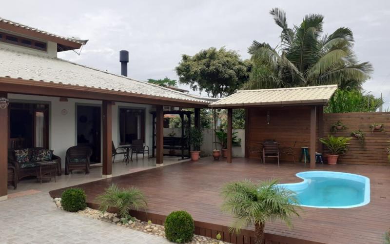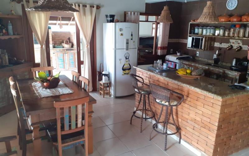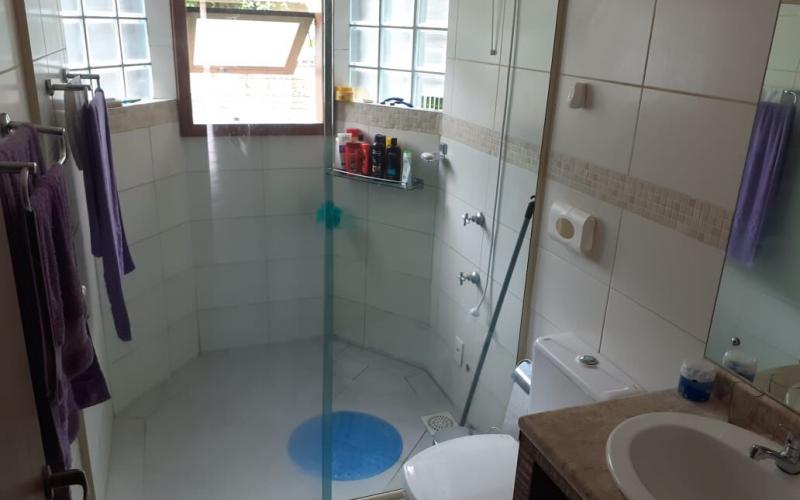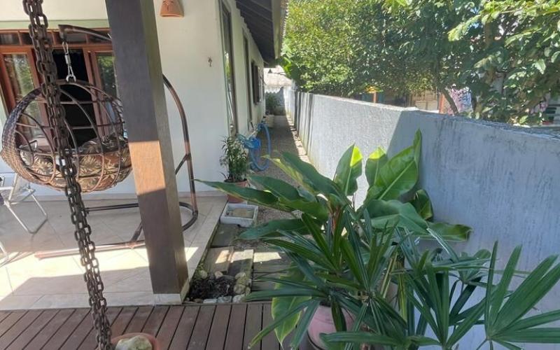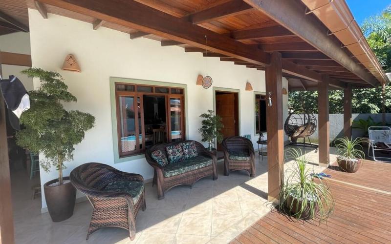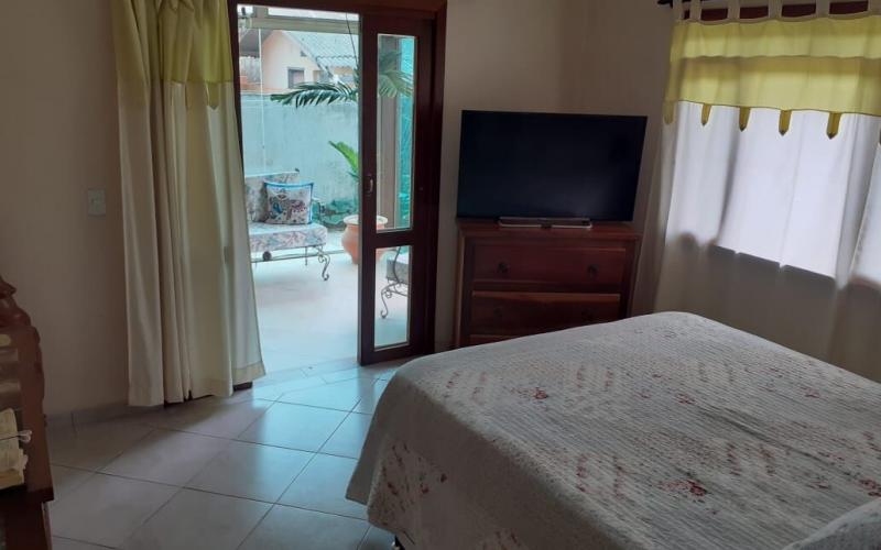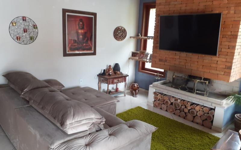 Ampla casa térrea com 183m2, sendo três quartos um deles suíte, dois banheiros social, cozinha e sala de jantar integrada, ampla sala de estar com lareira.