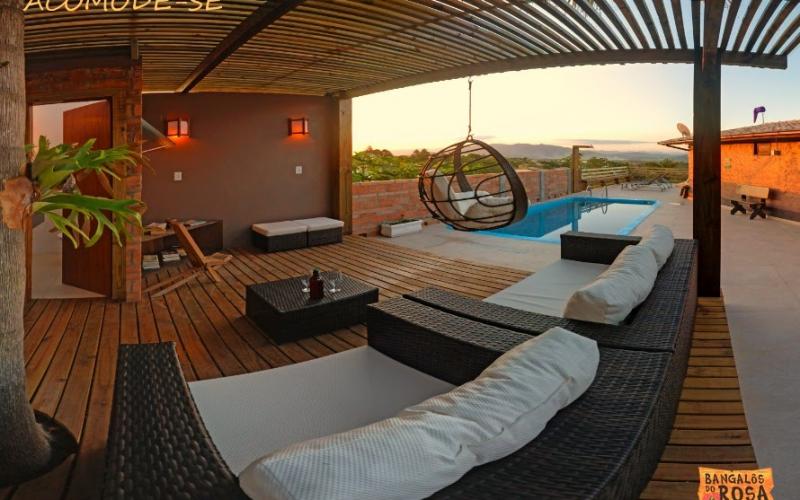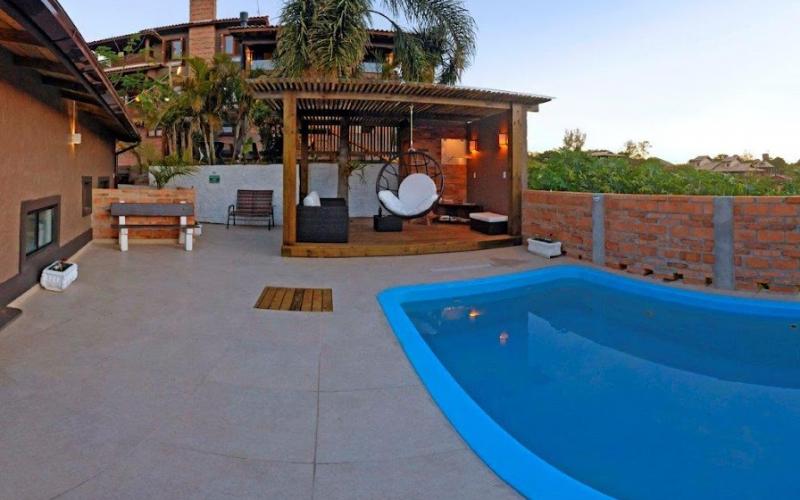 Está situada a 200 metros da entrada do Rosa Norte, 500 metros do mar, cerca de 15 minutos caminhando até a praia e 200 metros do centro , bares, restaurantes e mercados. linda vista, etacionamento para 13 carros. inserida nas principai plataformas de reservas. Faturamento pode ser informado desde 2006. Sistema Desbravado de Reservas. Todos bangalôs possuem cofre , churrasqueira, cozinha gourmet, cafeteira, torradeira, tostadeira, liquidificador. No quartos: ar condicionado Split e tv 42 smart. Banheiro com super ducha (bangalôs 01, 03 e 06 ducha a gás) e secador de cabelos. Internet wireless. Roupas de cama e banho. Serviço de camareira diário e estacionamento próprio. Veja abaixo mais detalhes de cada bangalô. Bangalô 01 Família para até 8 pessoas: 1 dormitório com cama de casal queen size ,ar condicionado Split , 1 dormitório com cama de casal queen size ou 2 camas de solteiro e ar condicionado Split, mezanino com cama de casal queen size ou 2 camas de solteiro e ar condicionado split, sala com lareira conjugada com cozinha gourmet, tv led 42 a cabo ,1 sofá-cama , banheiro com ducha a gás e secador de cabelos, cofre ,ampla varanda com rede e churrasqueira privativa. Bangalôs 02 ,04 e 05 para casal ou 4 pessoas : 1 dormitório com cama de casal queen size, tv led 42 a cabo, ar condicionado Split, cofre, 1 banheiro com super ducha e secador de cabelos, sala com 1 sofá cama, ampla varanda com rede e churrasqueira privativa, cozinha gourmet, cafeteira nespresso,internet wireless. O bangalô 5 possui, além da cama king size, mais 2 camas solteiro. Bangalô 03 com hidro para casal ou 4 pessoas : 1 dormitório com cama de casal queen size , tv led 42 a cabo, ar condicionado Split, cofre, 1 banheiro com ducha a gás e secador de cabelos, sala com 1 sofá cama, ampla varanda com rede e churrasqueira privativa, cozinha gourmet, cafeteira nespresso internet wireless. Bangalô 06 Master para até 10 pessoas. Andar superior: 2 dormitórios com cama de casal queen size ar condicionado Split e varanda,1 dormitório com cama de casal queen size mais 2 camas de solteiro , ar condicionado split, varanda com rede, 1 banheiro com ducha a gás e secador de cabelos. (nos quartos pode ser alterado para 2 camas de solteiro).Andar térreo: sala com sofá cama, cofre , Tv led 48 a cabo, lareira , churrasqueira, cozinha gourmet, varanda com rede e banheiro com ducha a gas. Bangalô 07 Premium para até 6 pessoas. Alto padrão com 200 m2 e 3 quartos , 1 suíte com ar condicionado e hidromassagem, cama king size , Smart tv led 42 a cabo, varanda com rede e linda vista da vila da praia do rosa e lagoa de ibiraquera . Outro quarto com cama de casal box ,Smart tv 32 led a cabo , ar condicionado ,varanda com rede e linda vista da vila da praia do rosa e lagoa de ibiraquera. O terceiro quarto com cama de casal box . Todos os quartos contam com ar condicionado Split quente e frio e os banheiros com chuveiro a gás.Sala integrada com cozinha gourmet, adega climatizada,churrasqueira , lareira, conjunto de sofás reclináveis elétricos , Smart tv 60 a cabo, home theater, lavabo, garagem, piscina , roupa de cama e banho, serviço de camareira diário, wi fi. Preço de R$ 5.000.000,00
