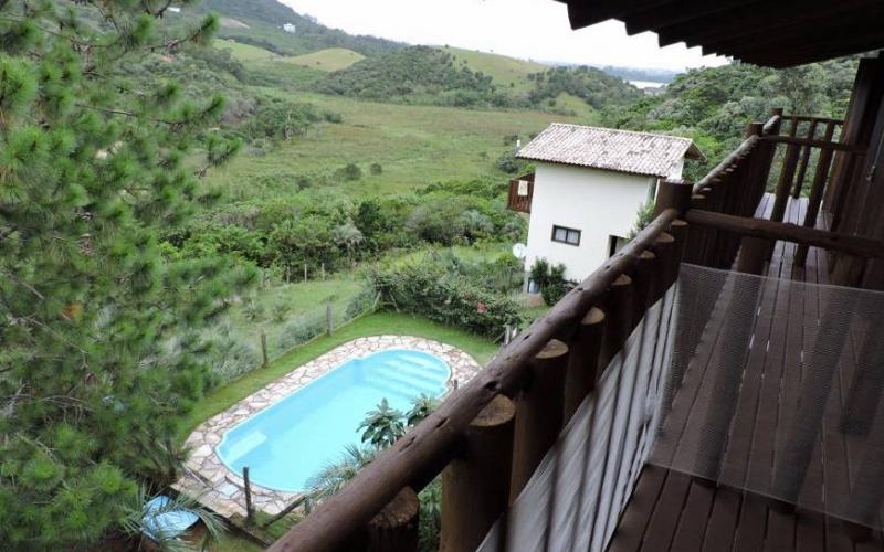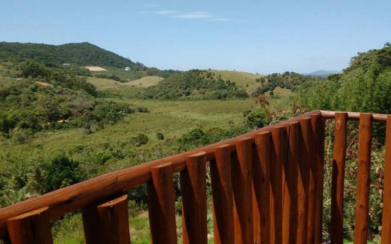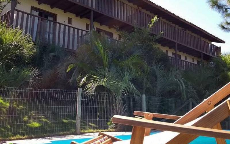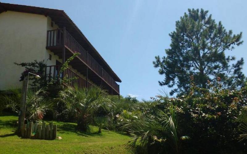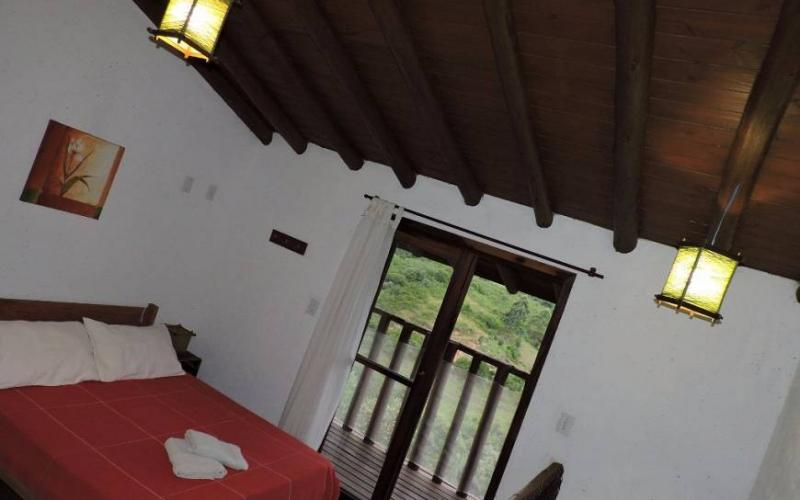 5 cabanas duplex com capacidade para até 6 pessoas, casa principal de 2 andares, 3 quartos, 2 banheiros, depósito e lavanderia.