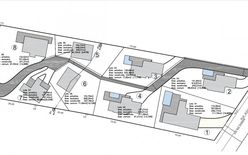 Dois acessos, casas 1, 2, 3 e 4 pela Rua Augusto Germano Wilke, casas 5, 6, 7 e 8 pela Rua da Pedreira.